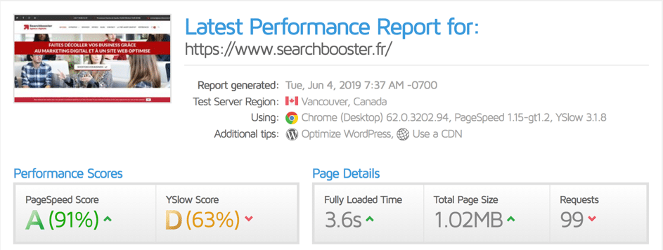 GTmetrix allows you in two clicks to have the indication of the detailed loading time of your page and your technical note on the subject. If ever this time is too long, you have the details of the loading phases and you can therefore very easily see if it comes from the server or from the way the page is loading, both in terms of content and layout and thus you can act on the right lever.