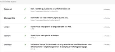 – If the language of the site is well specified as well as the Doctype and the encoding