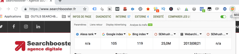The plug-in will thus always be present on your Chrome browser and in 2 clicks you will have access to a lot of very useful information such as your metadata (if it is filled in) and its compliance, particularly in terms of length.