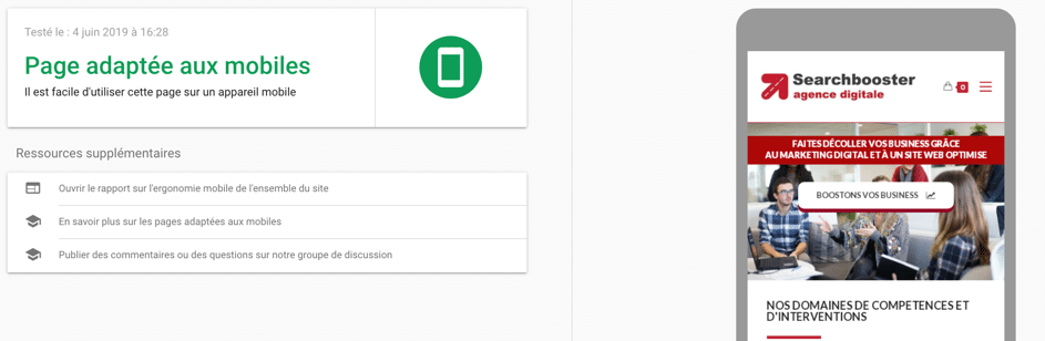 Once you have entered the address of your site, the tool will tell you very simply whether or not your site adapts to mobiles and tablets and know that if this is not the case since July 2018, this has a negative impact on your appearing in Google results.
